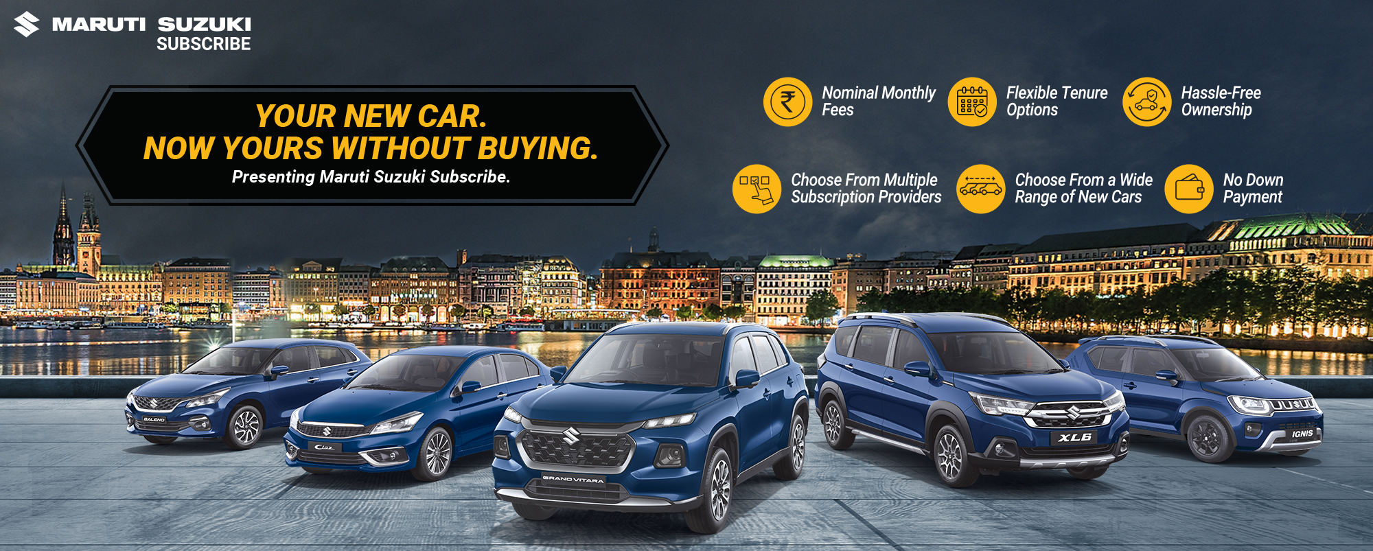 Maruti Suzuki Subscribe enables all customers to enjoy driving their preferred Maruti Suzuki cars without having to deal with all the financial responsibilities that come with owning a car.All you need to do is opt for a monthly subscription plan at a fixed monthly fee, which includes the routine maintenance and insurance costs, and choose a flexible tenure. At Competent Automobiles in, Dwarka Sector 14, Dwarka, all Hatchback, Sedan, SUV, the MUV models line-up includes Baleno, Invicto, EVitara, Jimny, Ciaz, Ignis, Fronx, Grand Vitara, XL6. Here, you will enjoy Maruti Suzuki Subscribe benefits such as: